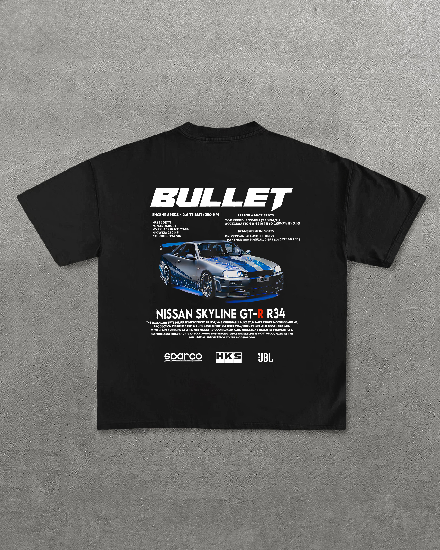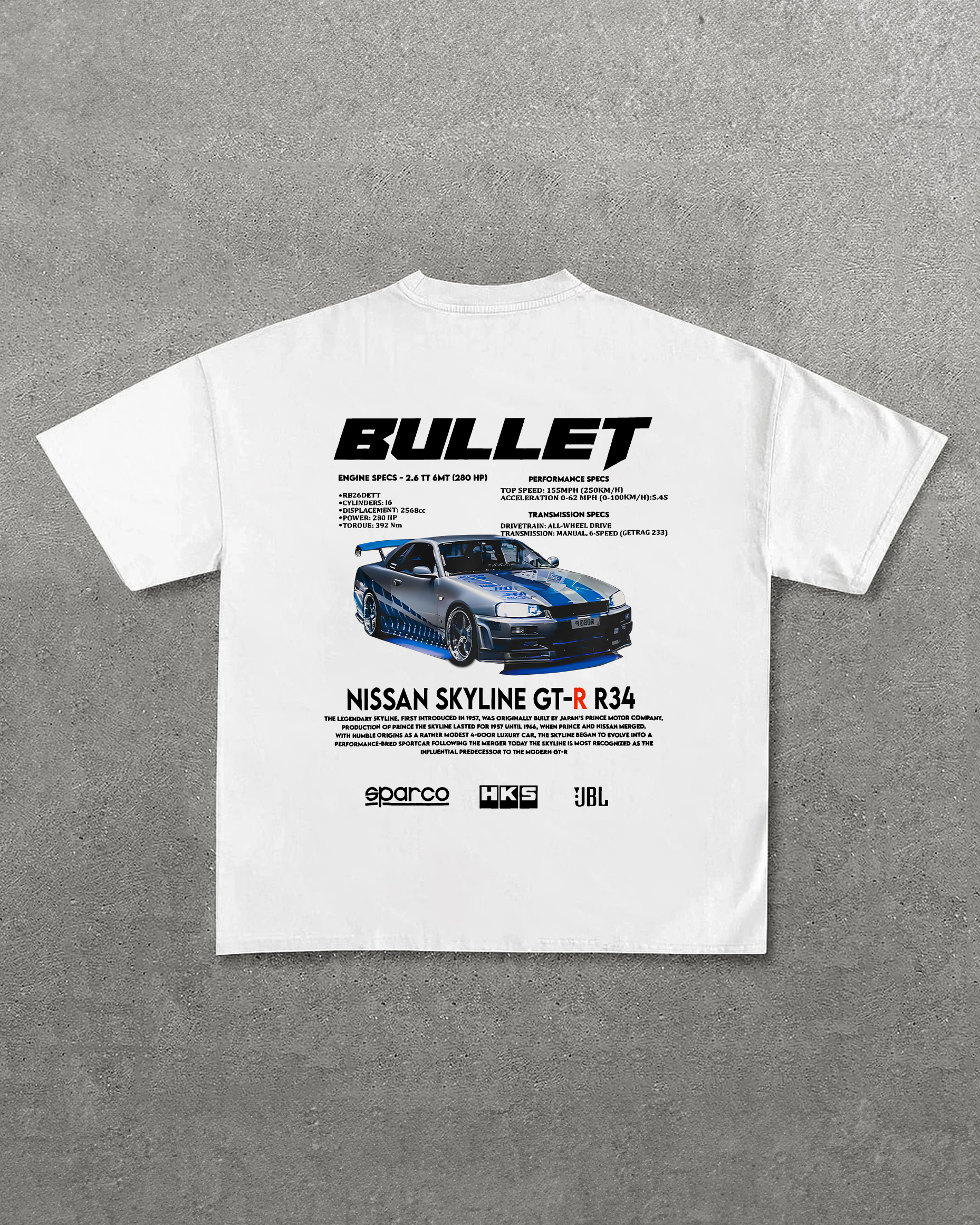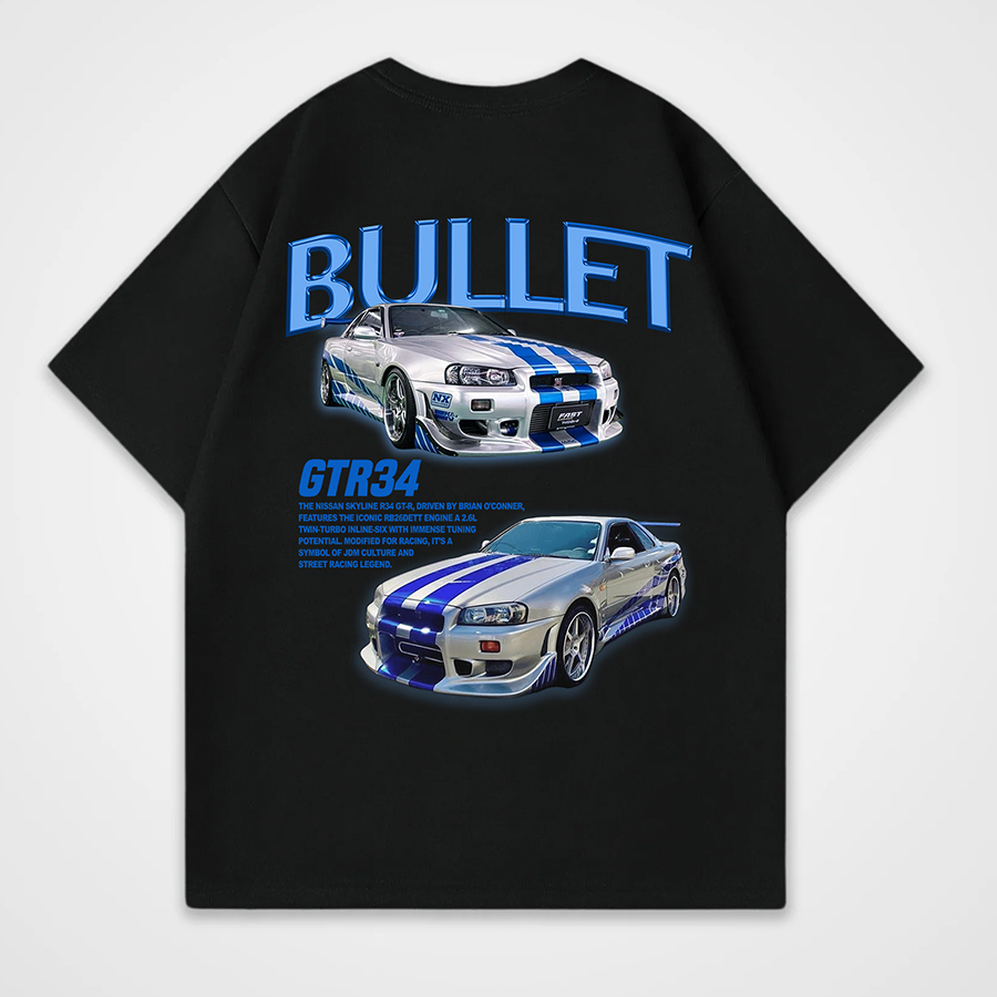 Bullet Nissan Skyline Gt-R R34 Printed Unisex Oversized T-shirt
