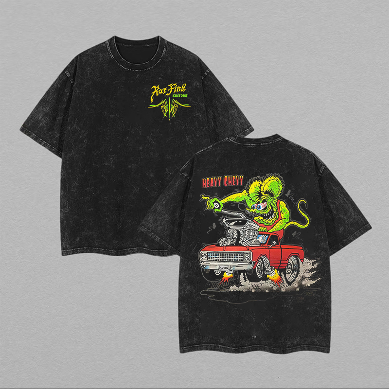 Rat Fink Heavy Duty Chevrolet Printed Unisex Washed T-Shirt