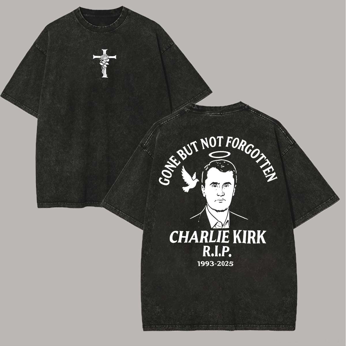 Charlie Kirk Gone But Not Forgotten Printed Unisex Washed T-Shirt