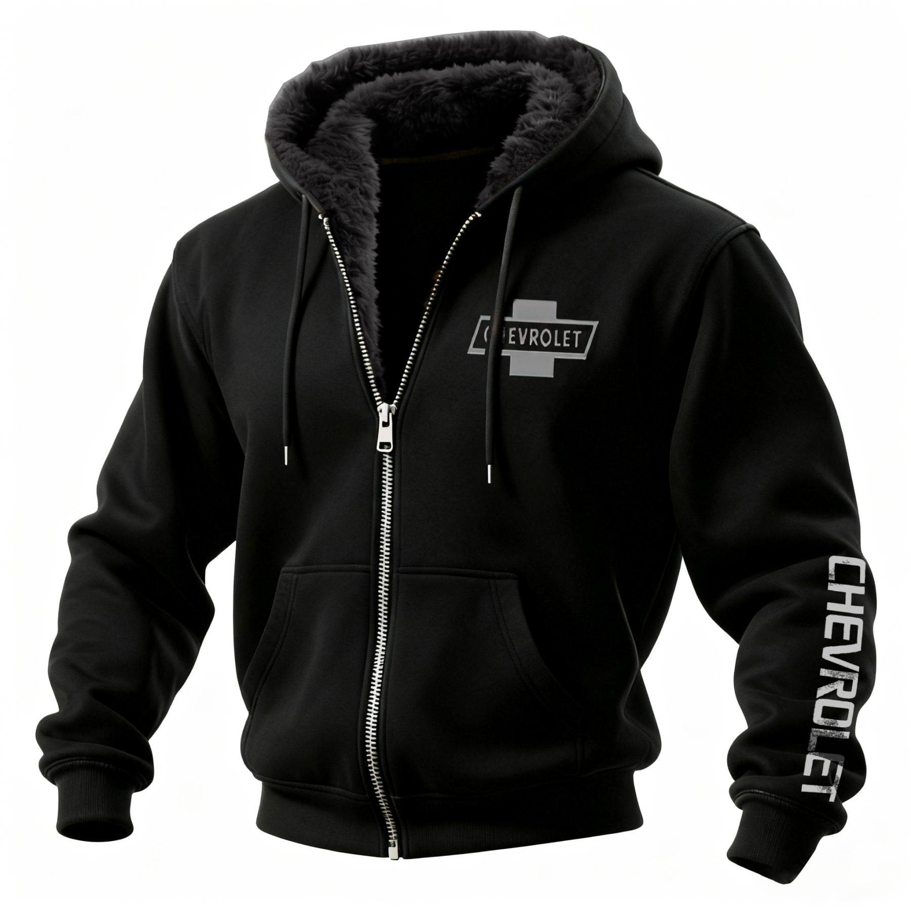 Chevrolet Square Body Printed Zippered Hooded Fleece Cardigan