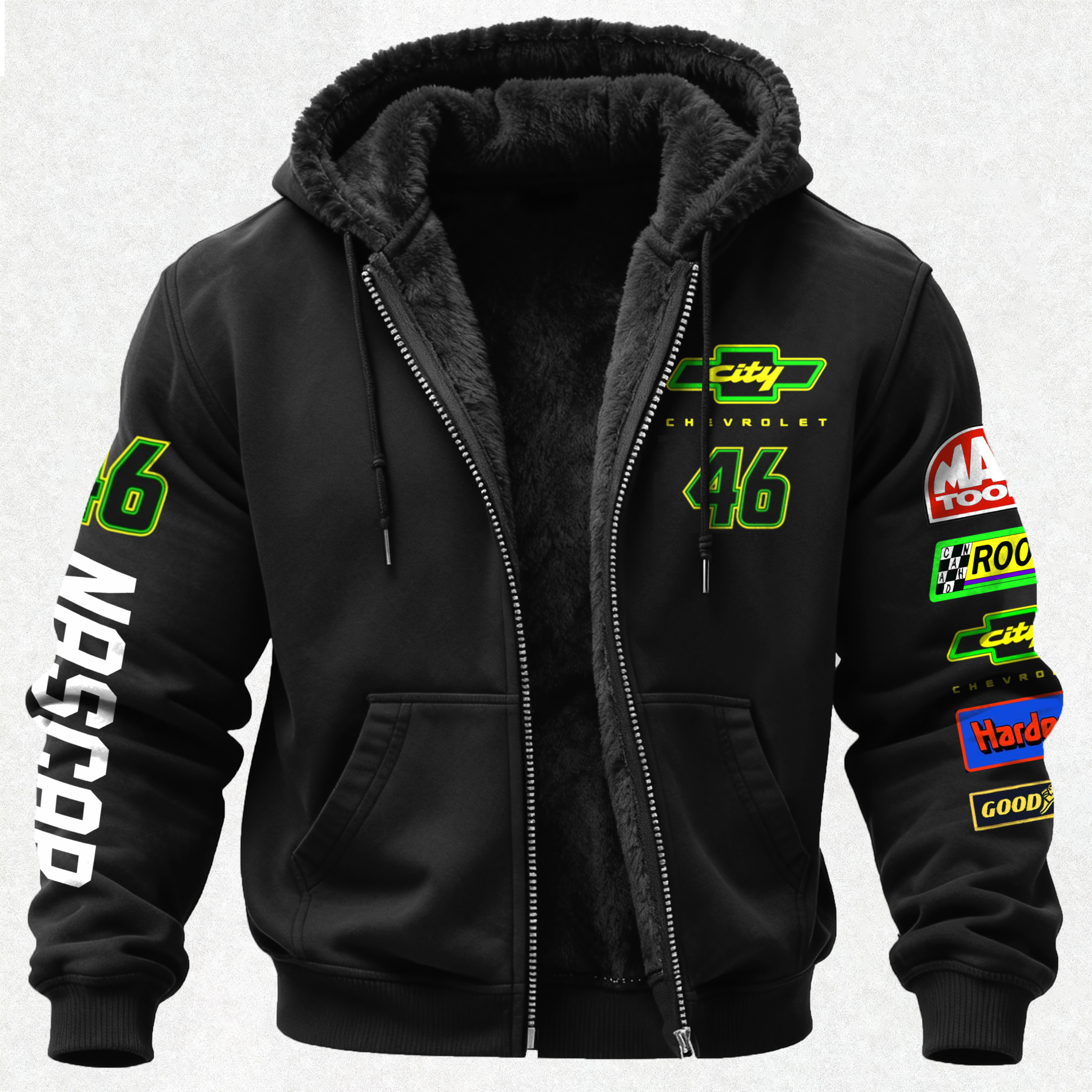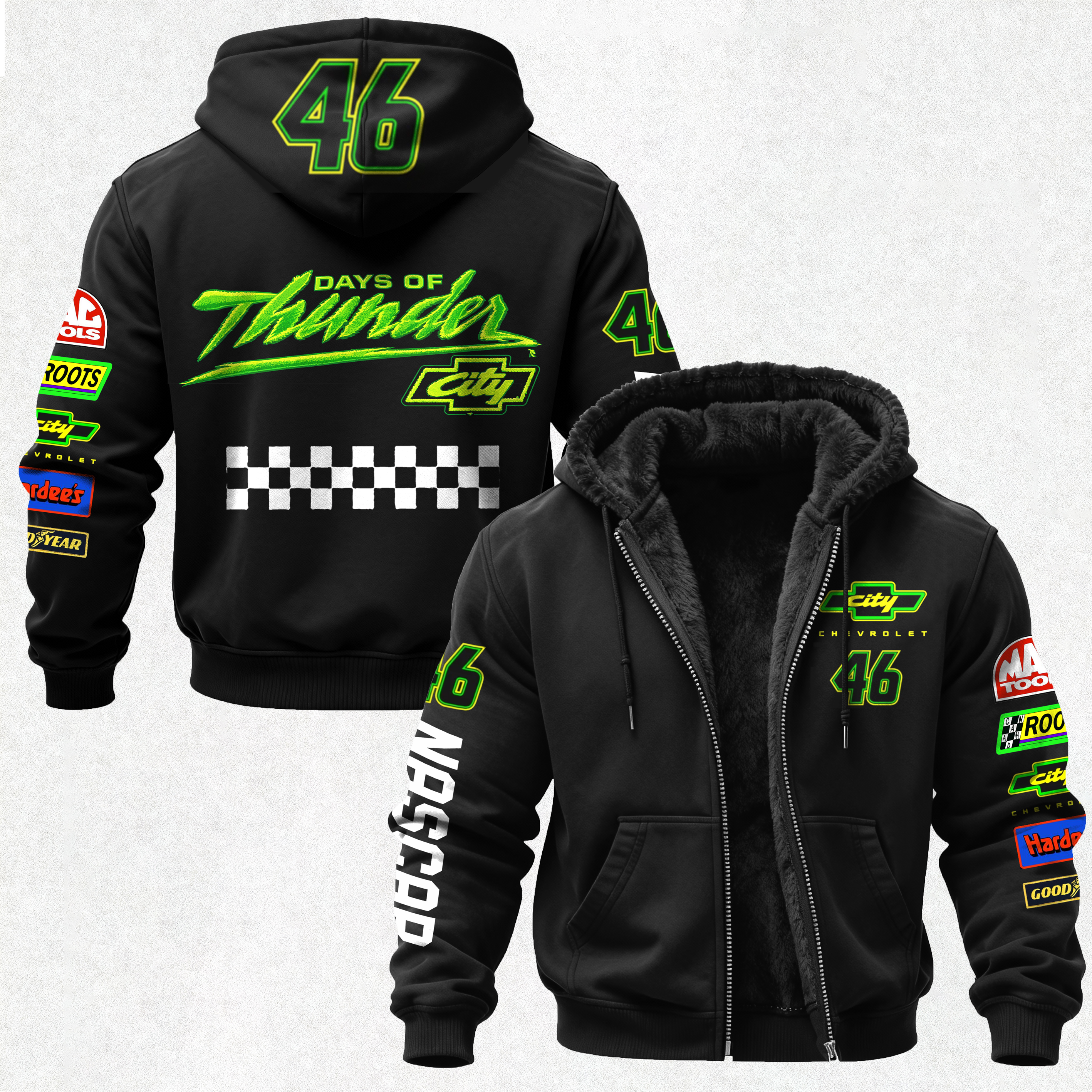 City Chevrolet Days of Thunder 46 Printed Zippered Hooded Fleece Cardigan