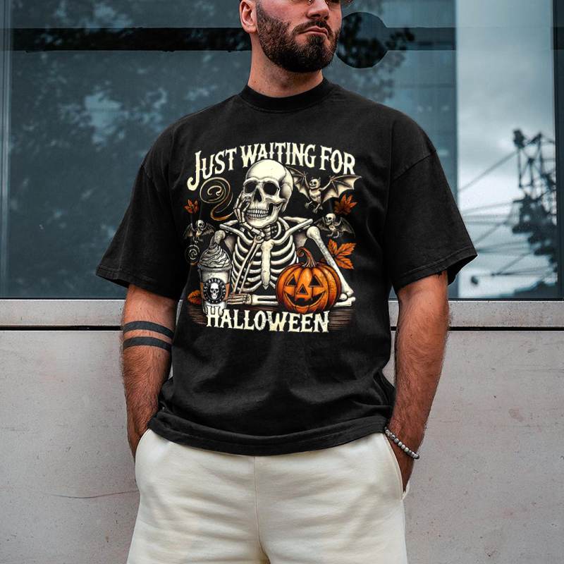 Just Waiting For Halloween Printed Oversized Unisex T-shirts