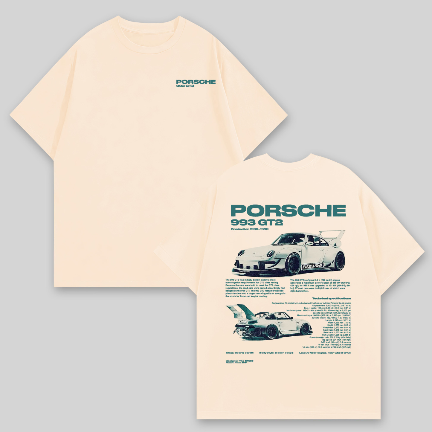 Porsche 993 GT2 Printed Oversized Unisex T-shirts