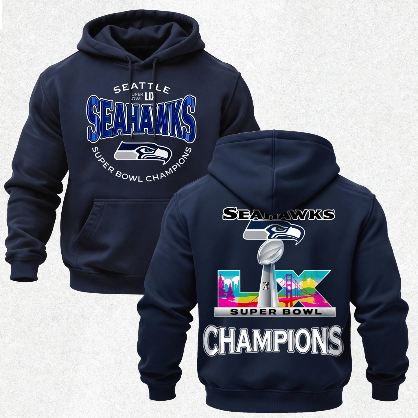 Seattle Seahawks Super Bowl LX Champions Printed Fleece-lined Unisex Hoodie