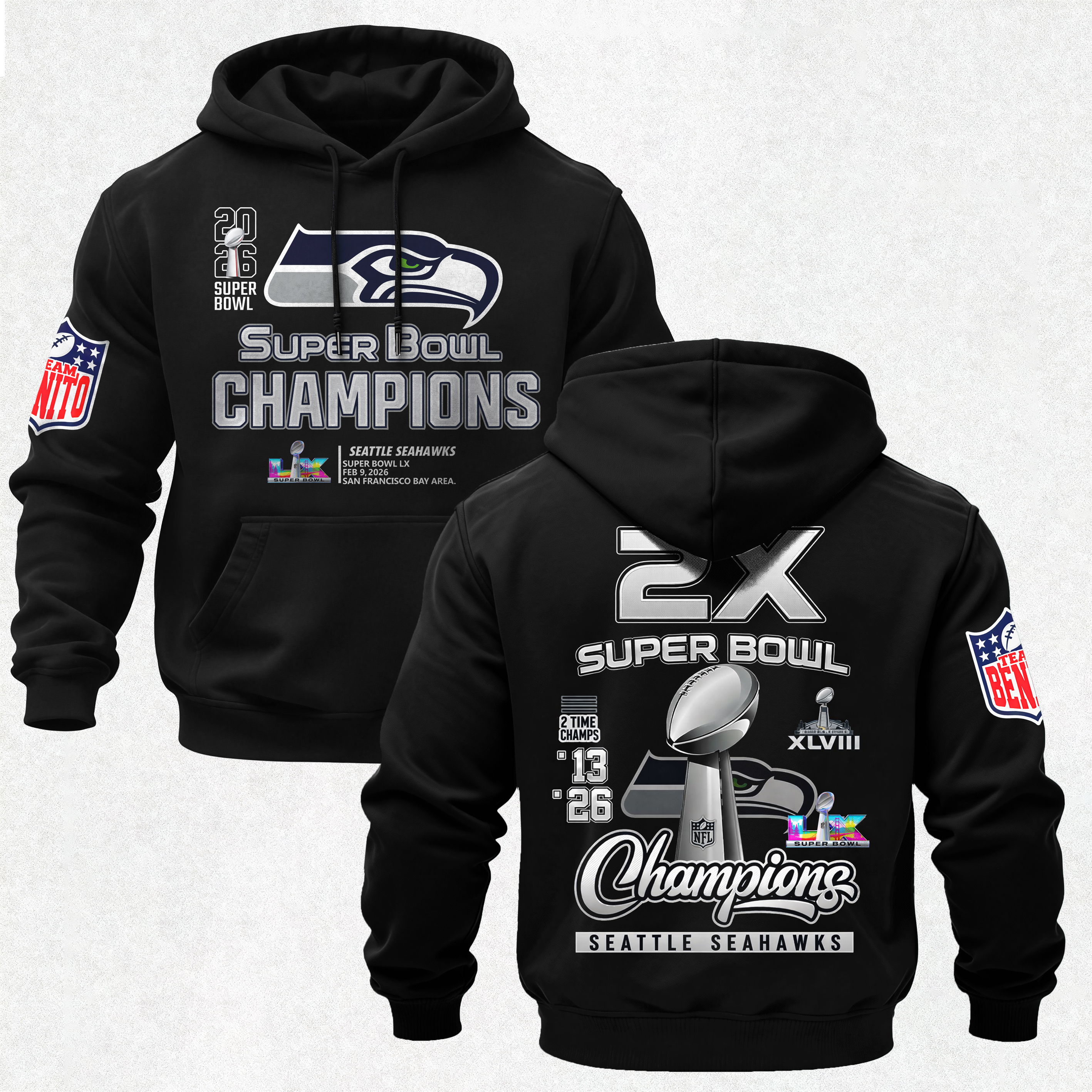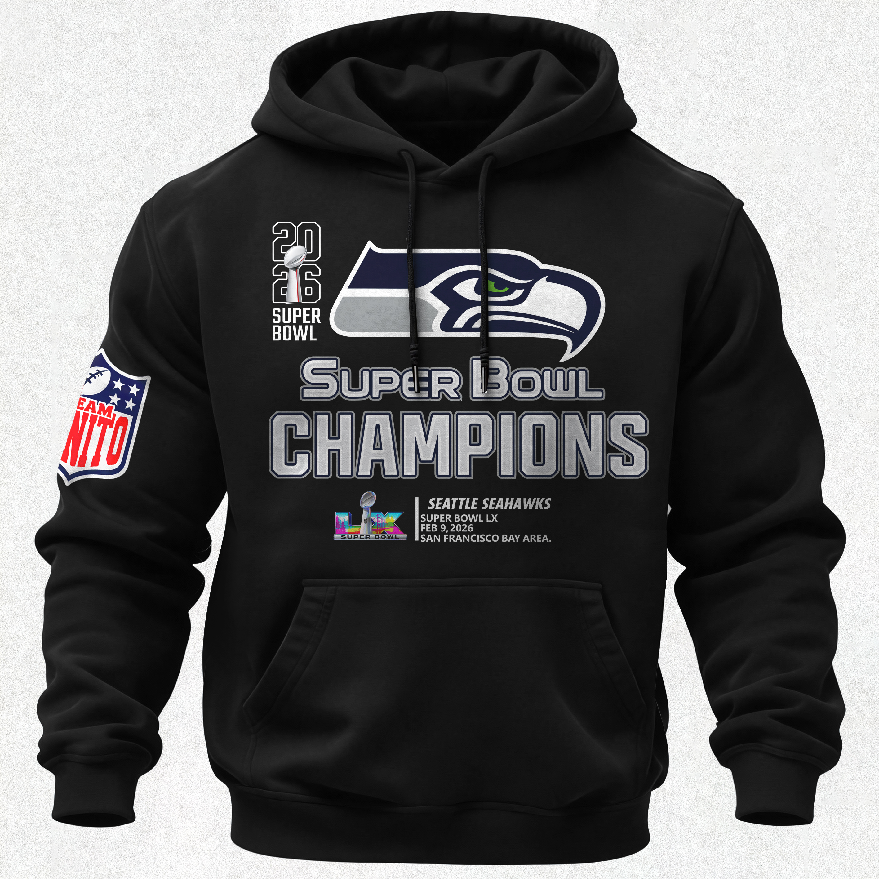 Super Bowl LX Champions Seattle Seahawks Printed Fleece-lined Unisex Hoodie