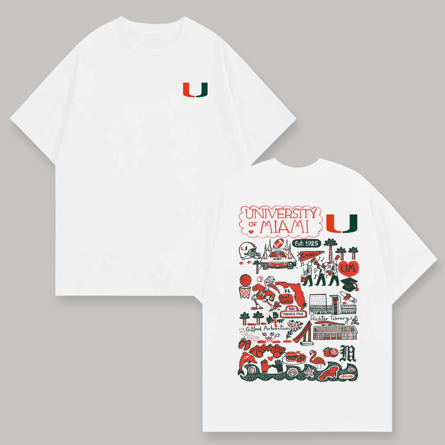 University of Miami Printed Oversized Unisex T-shirts